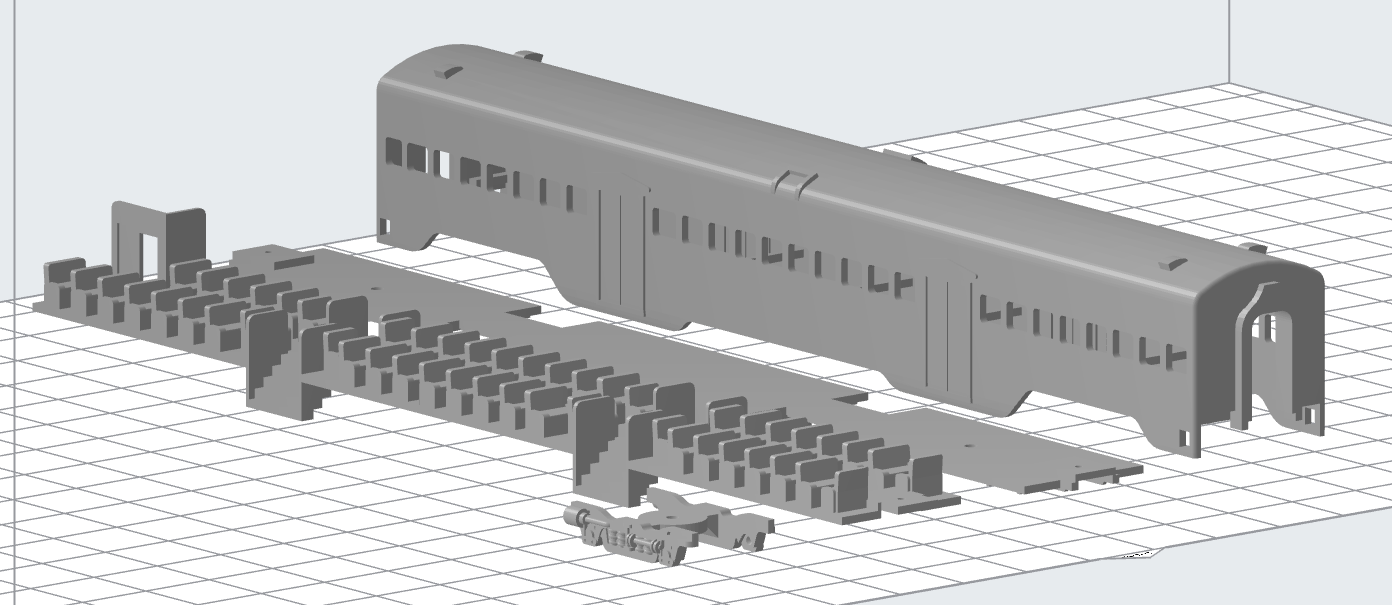 This is a model of the Pullman Plan 51908 100 Seat Coach was a unique commuter car used by the Rock Island. The trucks use 33" wheels.